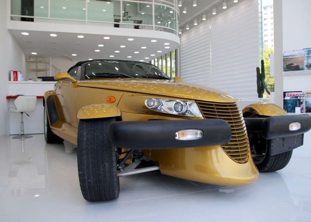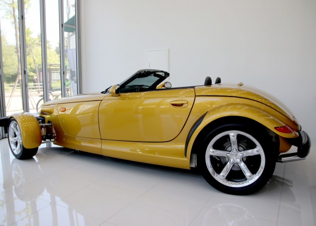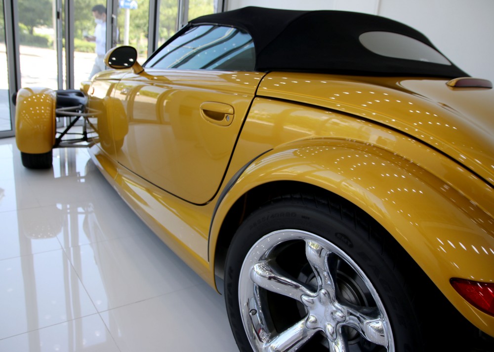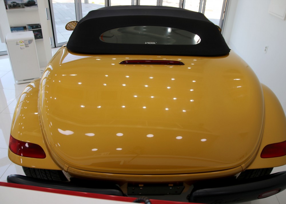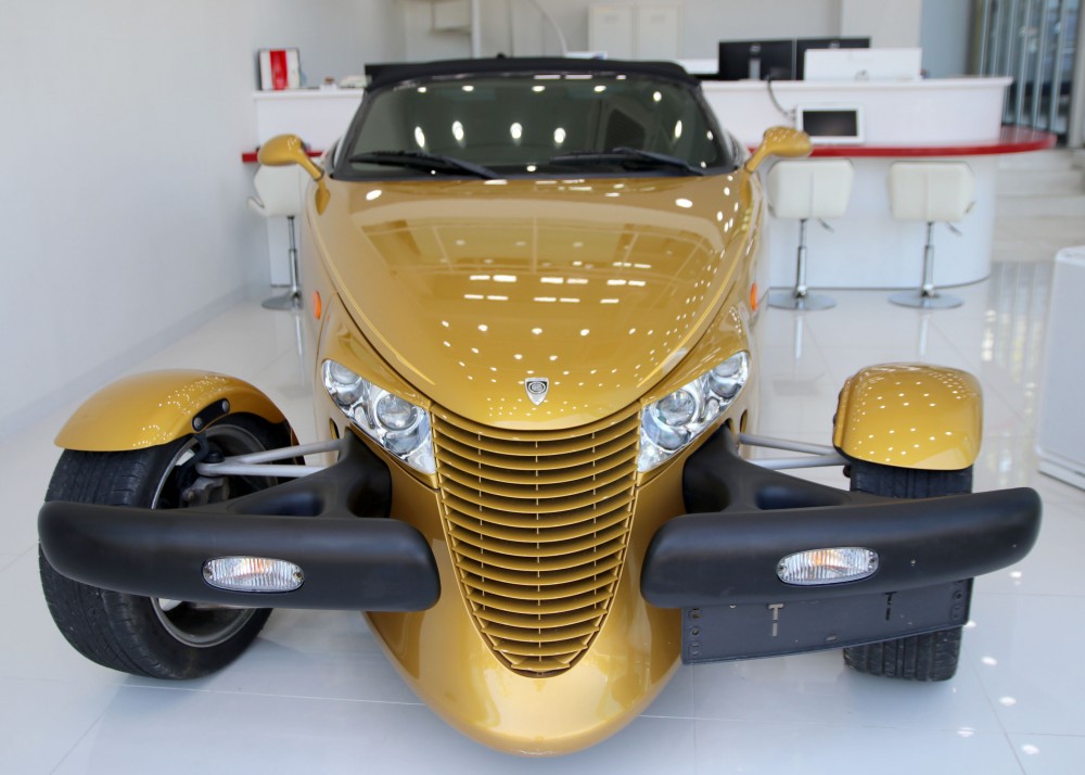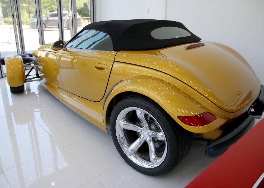 프라울러는 '핫로드'타입의 레트로 스포츠카 디자인으로 설계되어 있지만 불과 2002년까지 생산이 되었습니다. 로드마인에 전시되어 있는 이 매물은 마지막 모델이기 때문에 프라울러에 있어선 가장 최근 연식이라고 볼 수 있겠습니다. 97년에 초기 모델이 나왔을 때 241마력이었으나 98년에 1년간 생산을 쉬면서 업그레이드를 하게 되는데 99년에 다시 생산을 하면서 다양한 색상 선택지와 함께 3.5L 6기통 엔진에 253마력, 제로백이 6초대를 기록하는 재미있는 차량으로 거듭나게 됩니다.