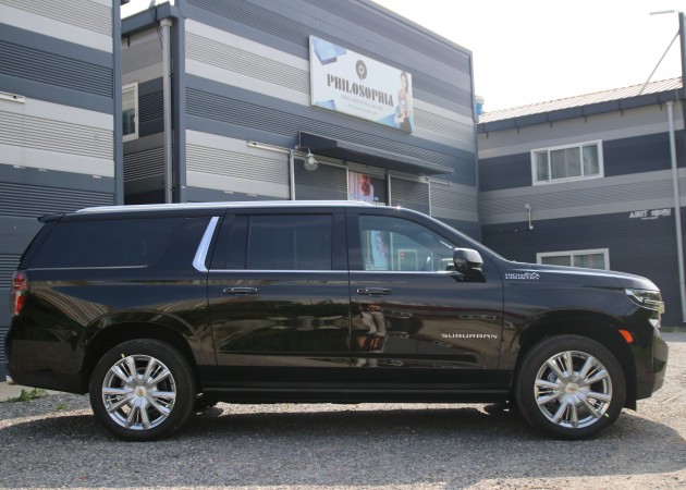 ▪ 연 식 : 2021 ▪ 모 델 : 쉐보레 서버밴(타호) ▪ 엔 진 : 6.2L V8 (420마력) ▪ 미 션 : 10단 오토미션 ▪ 평균연비 : 7.2 km/L (복합) ▪ 구동방식 : 4WD (후륜기반) ▪ 승차인원 : 9인승 인증 차량 ▪ 특 징 : 쉐보레의 기함, 서버밴의 풀체인지 모델. 구형에 비해 승차감과 실내 공간 활용성이 더욱 커졌음.